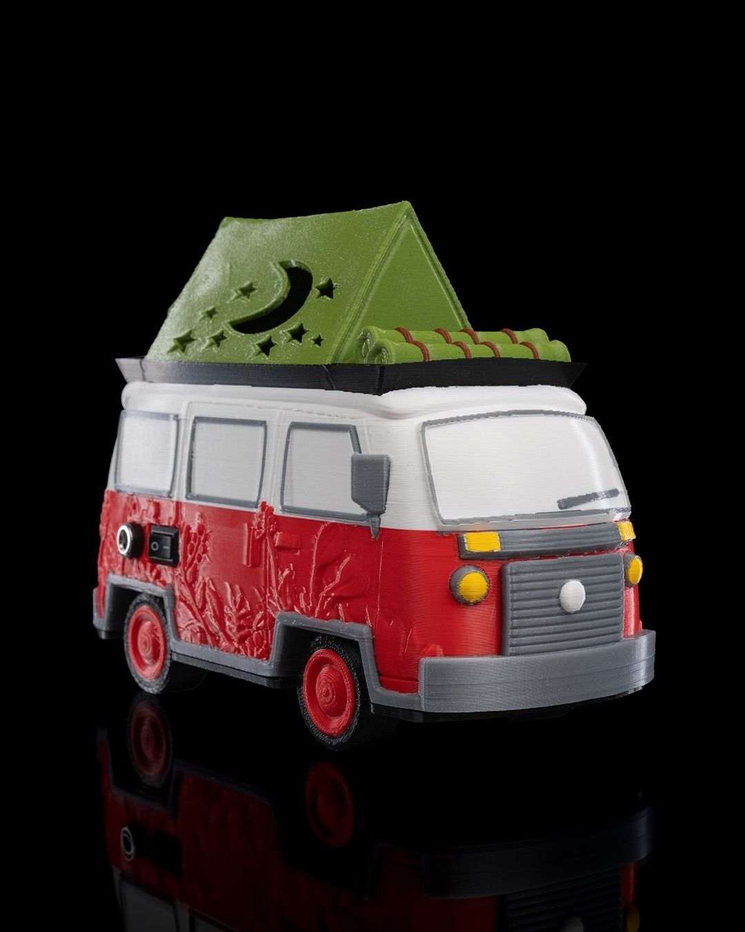 The Camping Bus Wall Light is a whimsical piece that adds a sense of adventure and nostalgia to your space. Designed to resemble a retro camping bus, this light fixture brings a charming, laid-back vibe perfect for anyone who loves the great outdoors. With its warm, subtle glow, it evokes memories of starry nights, campfires, and scenic road trips.